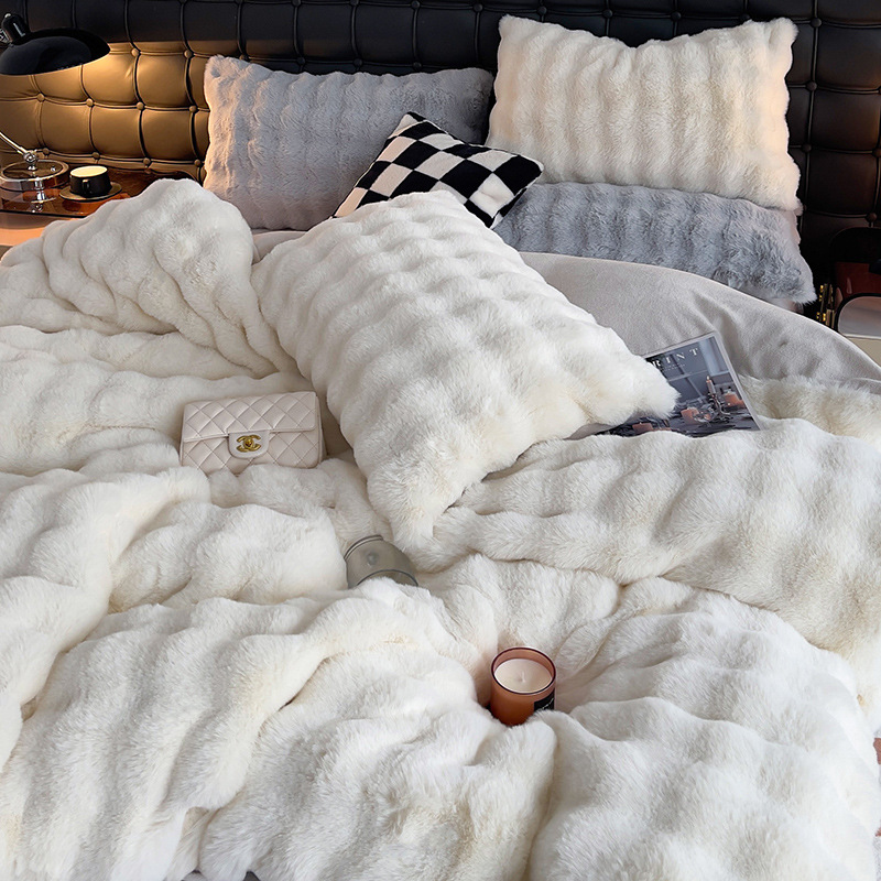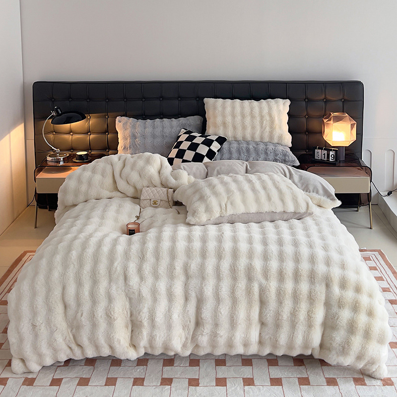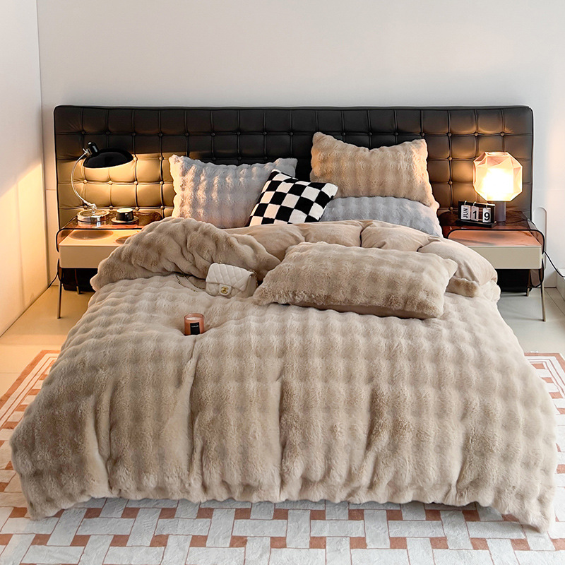 Class A Super Thick Rex Rabbit Cashmere 4 Piece Set Milk Fur Fur Extra Thick Autumn And Winter Baby Cashmere Quilt Set Bedding